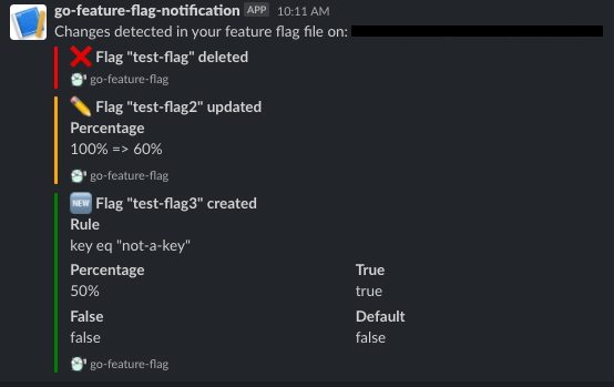 The Slack notifier allows you to get notification on your favorite slack channel when an instance of go-feature-flag